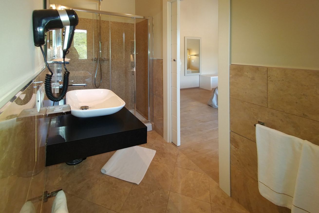 Le camere Deluxe sono ubicate al primo piano e sono facilmente raggiungibili dal parcheggio tramite un percorso lungo la piscina geotermica e una comoda rampa di accesso. Sono collegate direttamente all'area benessere tramite una comoda scala. Dispongono tutte di balcone privato attrezzato con tavolino e sedie e hanno vista sulla piscina geotermica di I Piastroni Hotel & SPA.