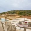 - balcone arredato con tavolo e sedie con vista sulla piscina geotermica