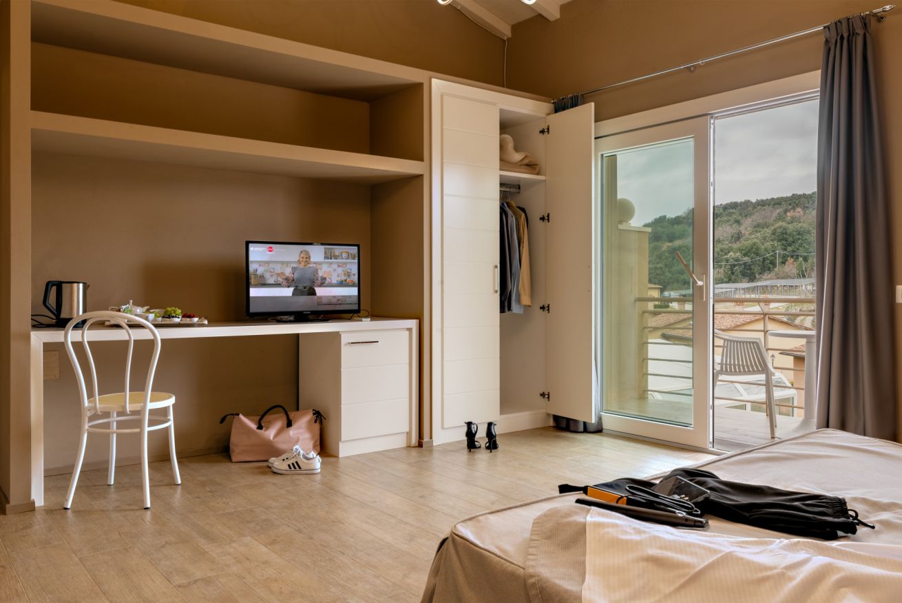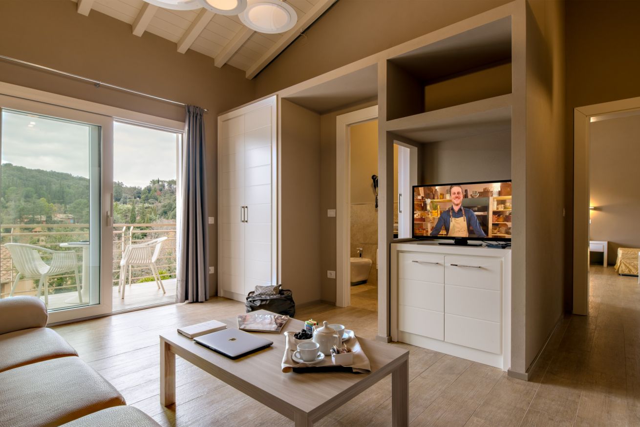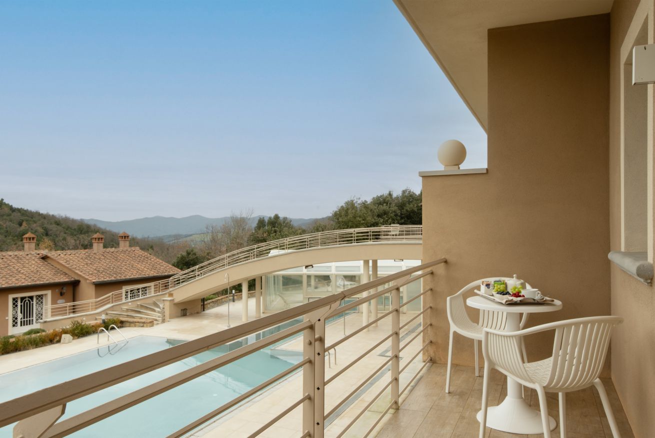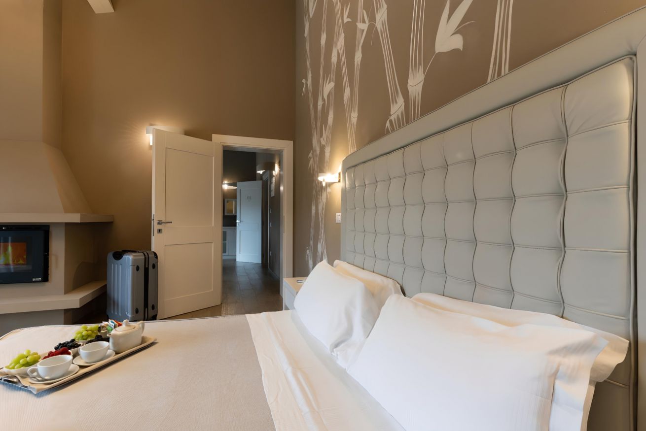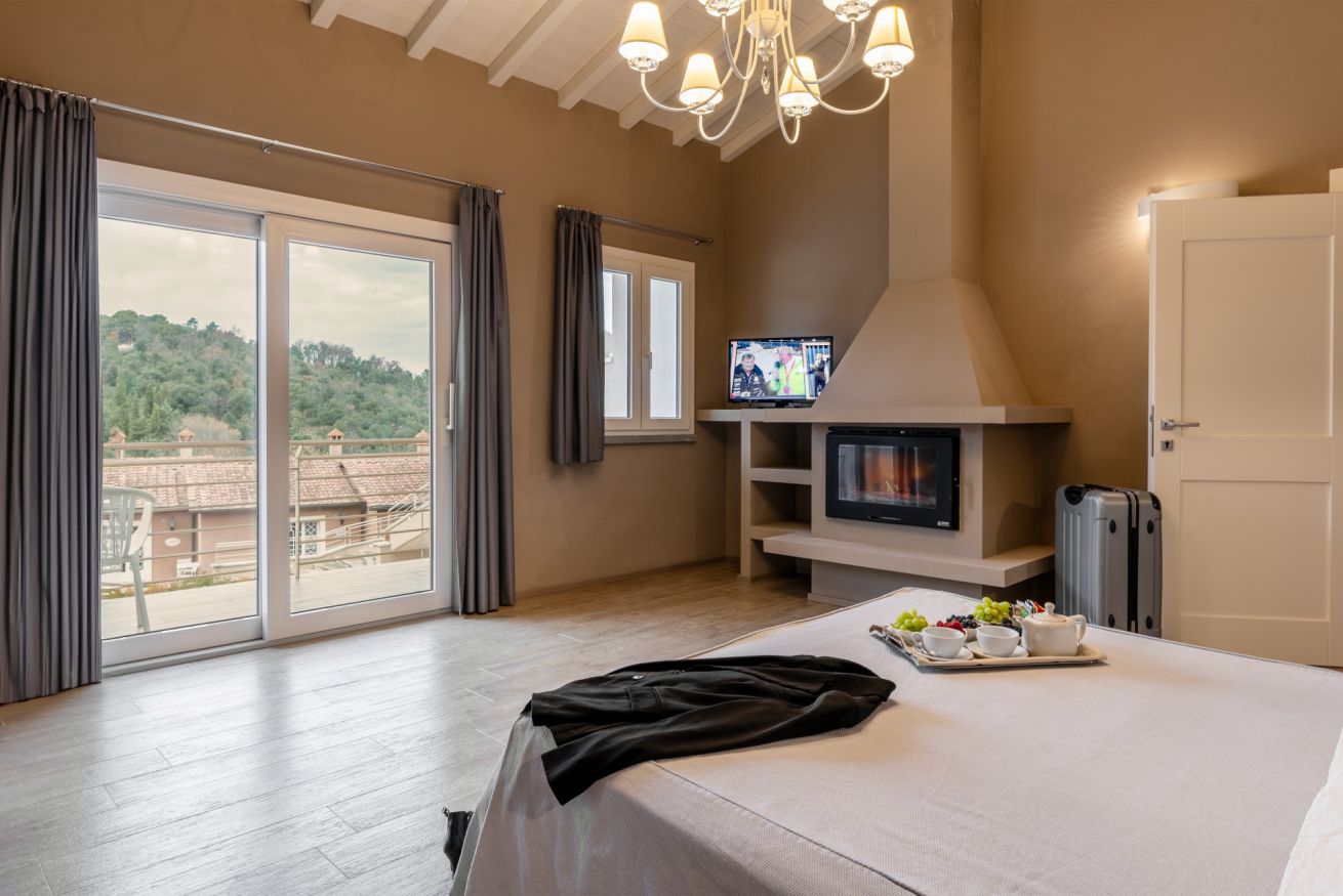 Approfitta del comfort e degli ampi spazi che caratterizzano le tre Executive Suite; sono composte da un ampio soggiorno, grande camera da letto con letto matrimoniale e camino e bagno privato con doccia. Sia dal soggiorno che dalla camera da letto si esce sul balcone arredato con tavolo e sedie, che affaccia sulla piscina geotermale dell'hotel.