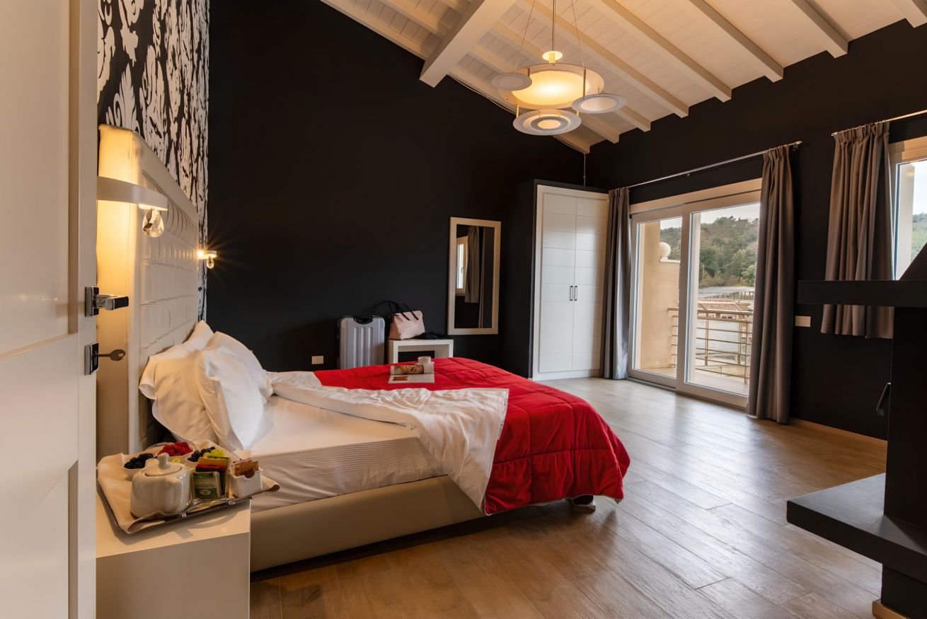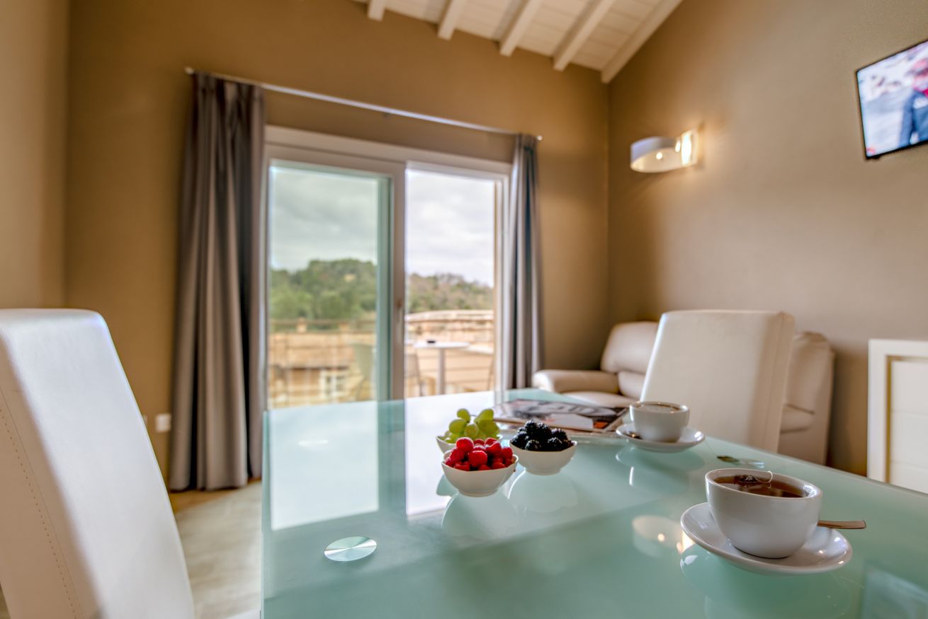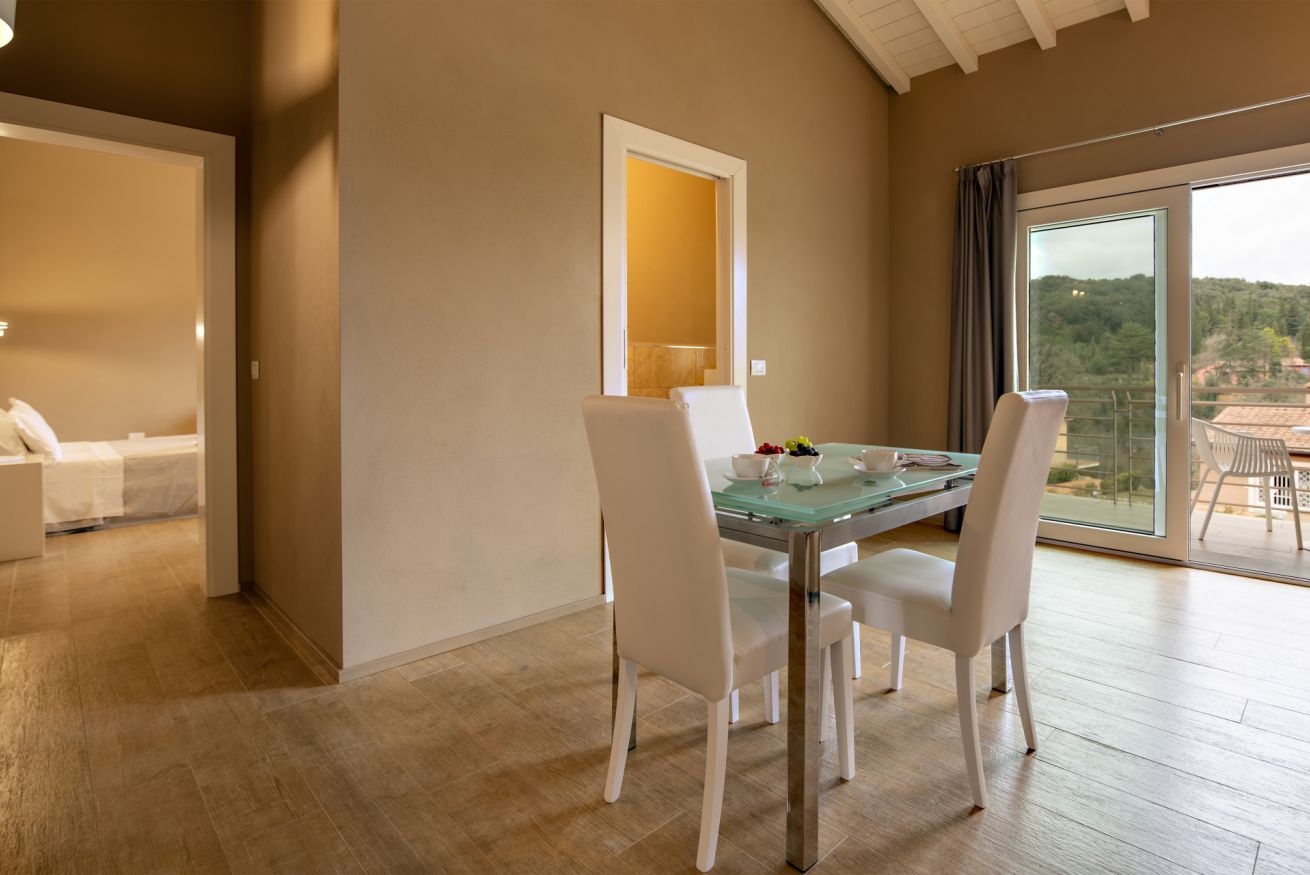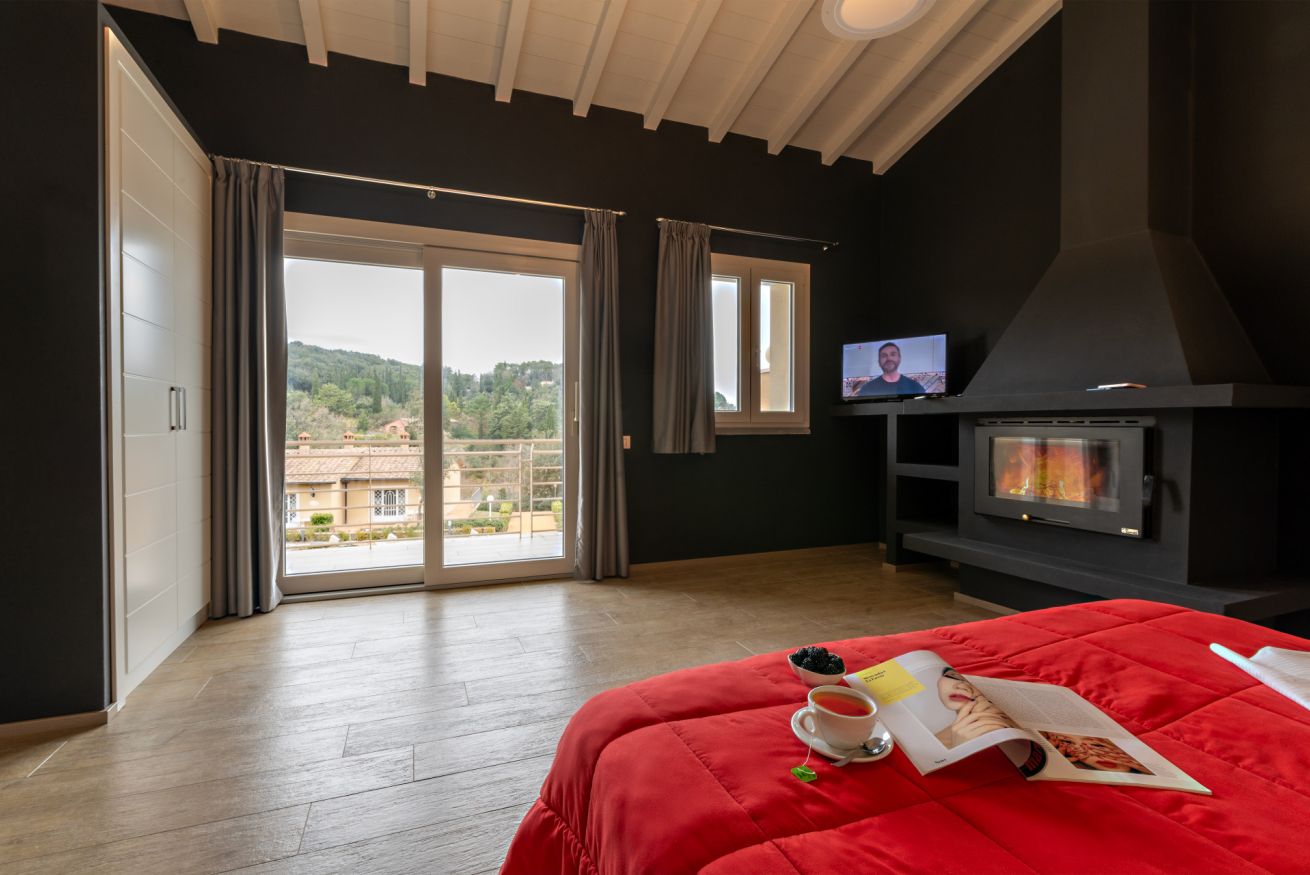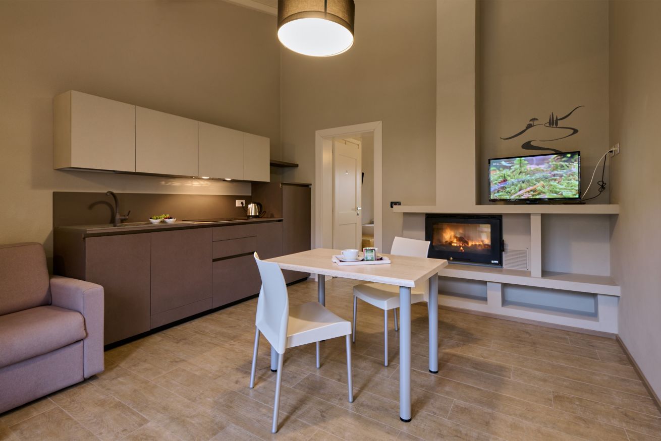 Approfitta del comfort e degli ampi spazi che caratterizzano le tre Executive Suite; sono composte da un ampio soggiorno, grande camera da letto con letto matrimoniale e camino e bagno privato con doccia. Sia dal soggiorno che dalla camera da letto si esce sul balcone arredato con tavolo e sedie, che affaccia sulla piscina geotermale dell'hotel.