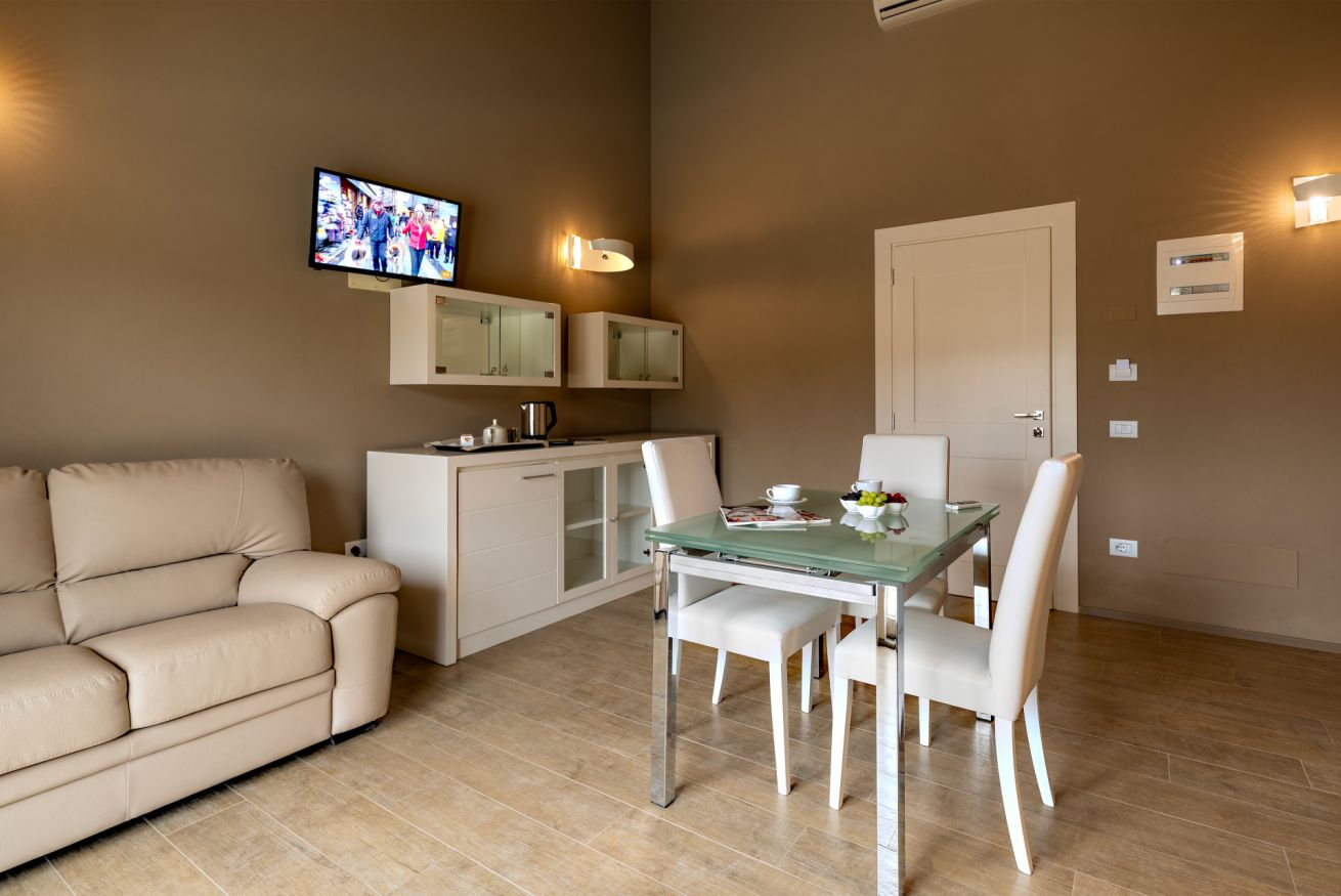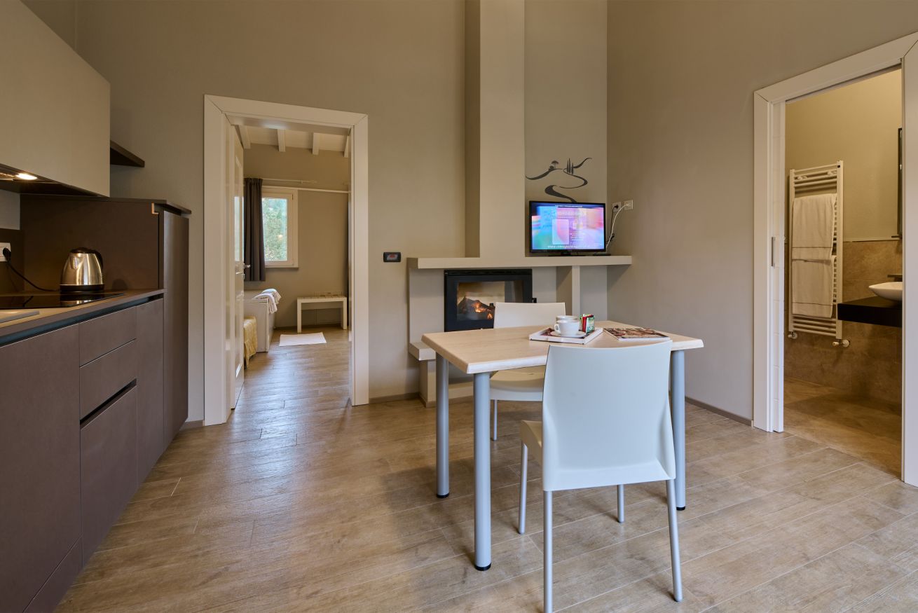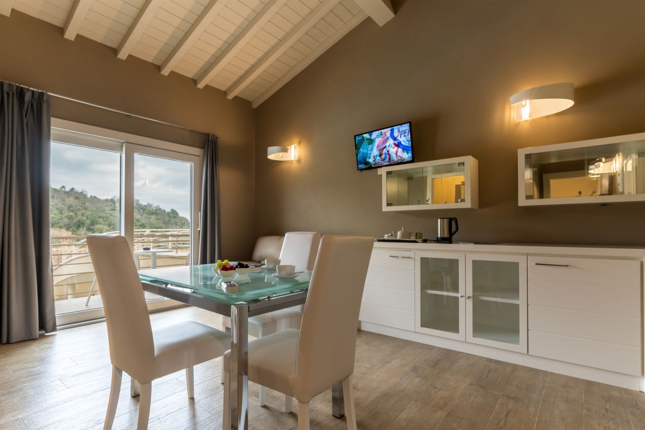 Le Executive Suite sono ubicate al primo piano; sono facilmente raggiungibili dal parcheggio tramite un percorso lungo la piscina geotermica e una comoda rampa di accesso al primo piano. Il primo piano è collegato direttamente all'area benessere con piscina interna ed esterna geotermica con acqua calda a 33°.